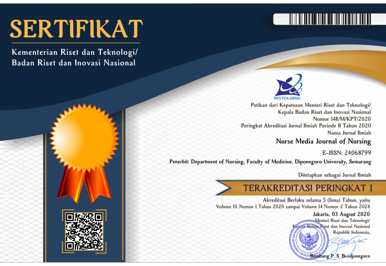 Nurse Media Journal of Nursing (NMJN) is a peer-reviewed electronic international journal. This statement clarifies ethical behaviour of all parties involved in the act of publishing an article in this journal, including the author, the chief editor, the Editorial Board, the peer-reviewer and the publisher (Diponegoro University). This statement is based on COPE’s Best Practice Guidelines for Journal Editors.